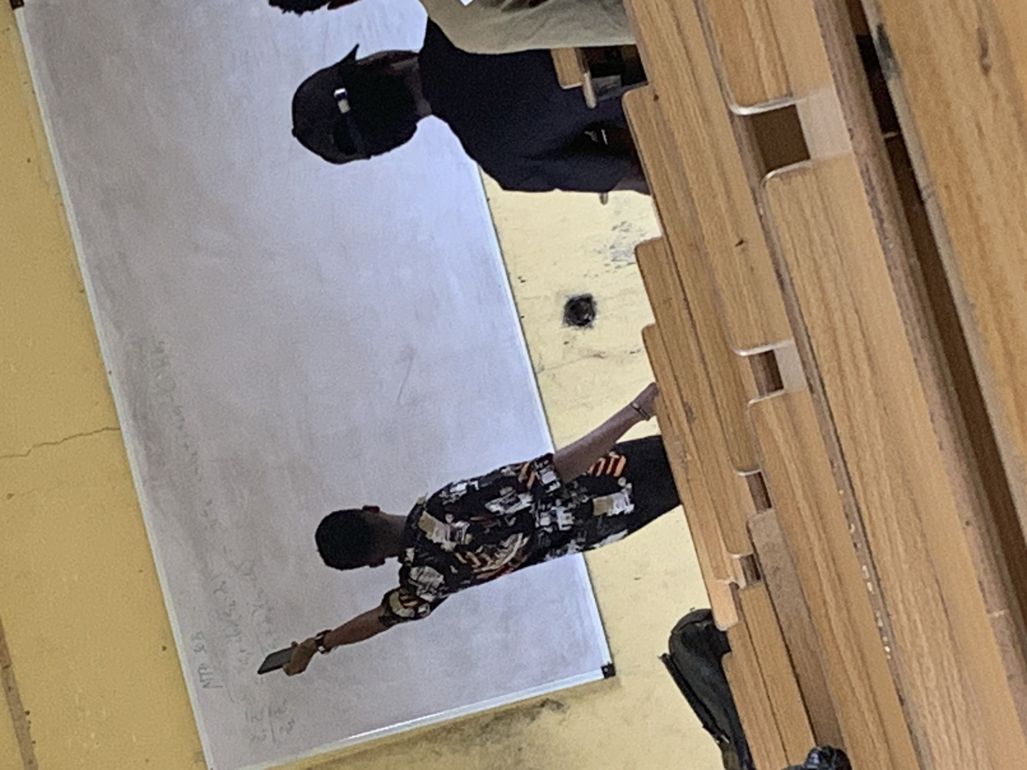 The image depicts an indoor scene in a classroom or lecture hall located in Ihiagwa, Nigeria