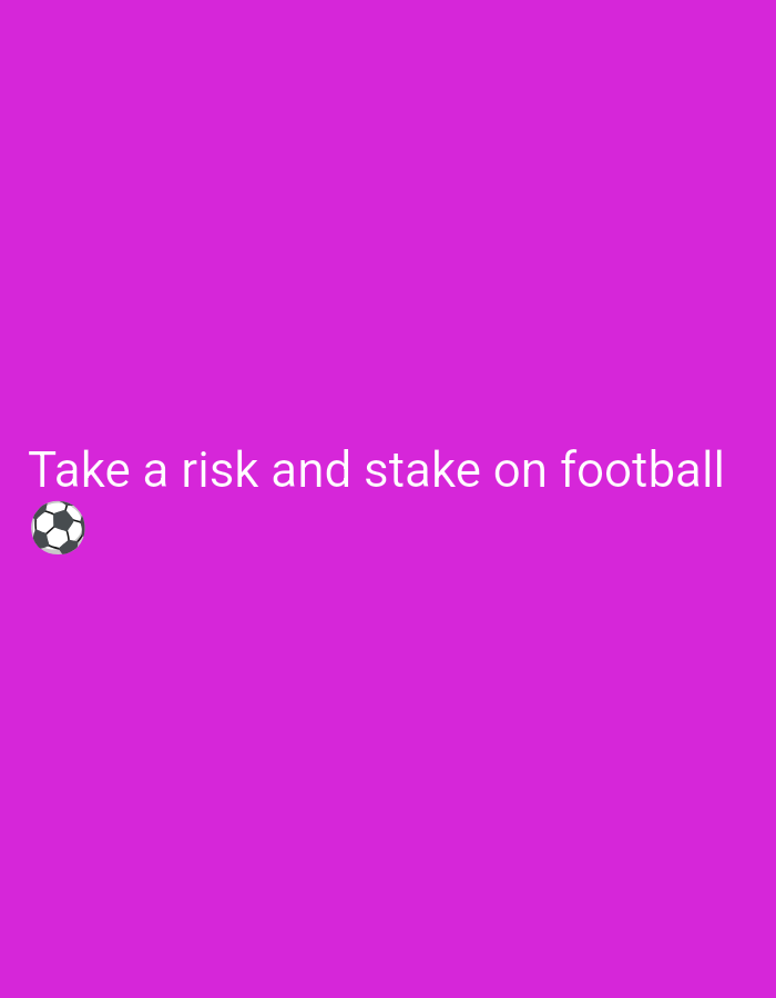 The image displays a solid magenta background. White, sans-serif text, positioned in the lower-left quadrant, reads: "Take a risk and stake on football". A standard black and white football emoji is located directly beneath the text, slightly to its left. No specific geographic location within Onitsha, Nigeria, is depicted. No people, discernible subjects beyond the text and emoji, or interactive elements are present. The environment is limited to the digital display of text and an emoji on a uniform magenta field.