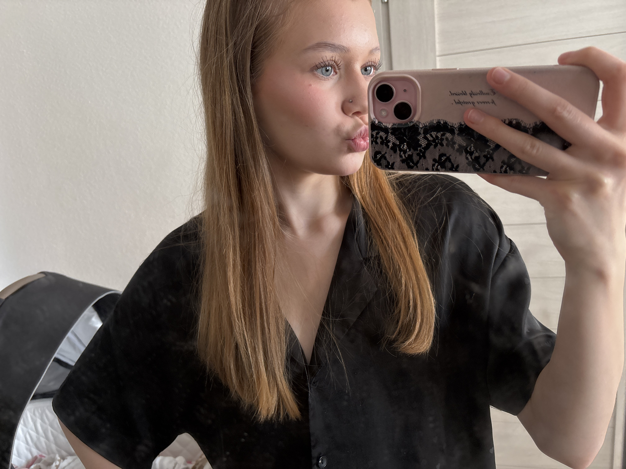A young adult female is depicted in an indoor setting in Yekaterinburg, Russia, taking a mirror selfie