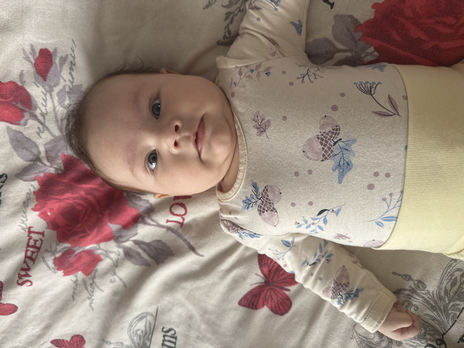 - "An infant is depicted lying supine on a patterned bedsheet in the city of Pleven, Bulgaria" by FM-uLvty2, licensed under CC BY 4.0