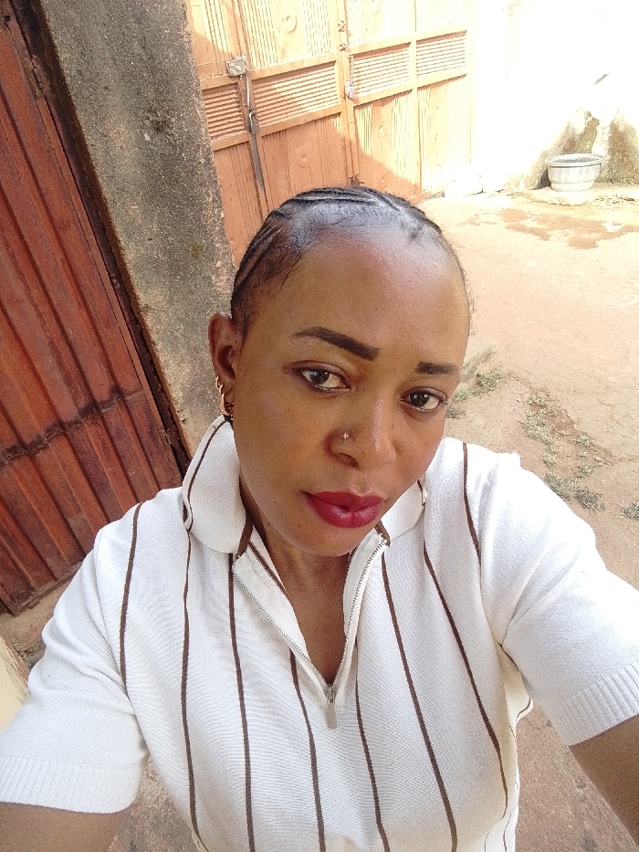 A close-up selfie captured in Sabon Tasha, Nigeria, features a female individual with medium-dark skin