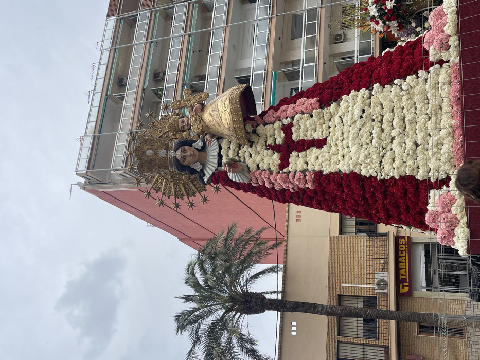 - "This outdoor image, taken in Paiporta, Spain, displays a large, flower-adorned religious statue on a mobile platform under an overcast sky" by FM-D8nzh1, licensed under CC BY 4.0