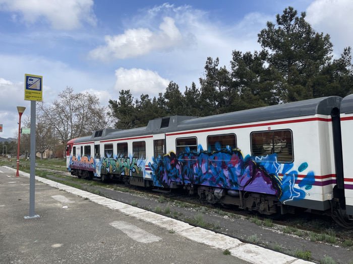 - "A passenger train is stopped on railway tracks next to a concrete platform at a train station in Buñol, Spain, under a partly cloudy sky" by FM-D8nzh1, licensed under CC BY 4.0