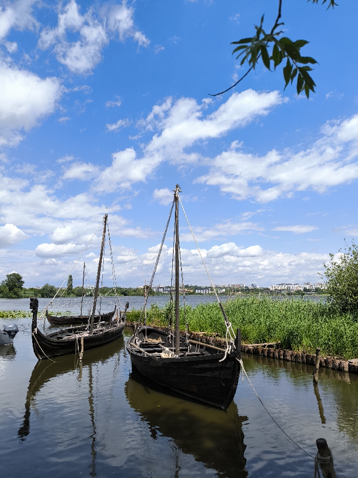 - "Three dark wooden boats with masts and ropes rest on a calm, dark body of water" by FM-dWhzM2, licensed under CC BY 4.0