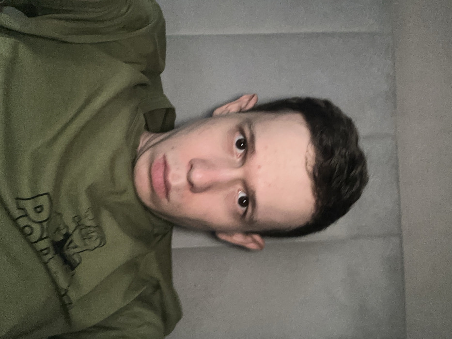 A male individual is depicted in a frontal, chest-up portrait within an indoor setting