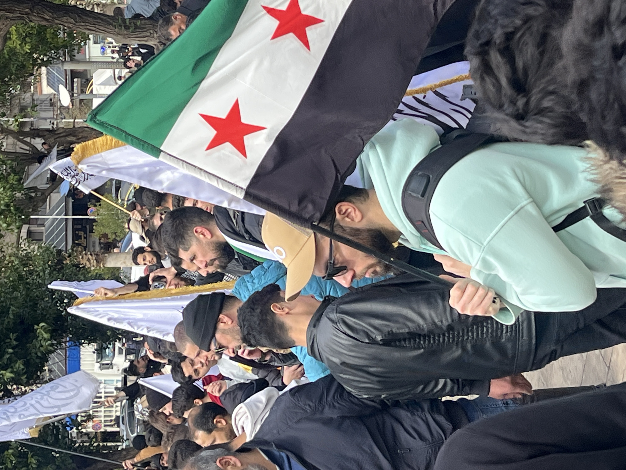 - "An outdoor gathering of numerous individuals, predominantly adult males, is depicted in an urban environment within As-Salihiya Municipality, Syria" by FM-WnN6r1, licensed under CC BY 4.0