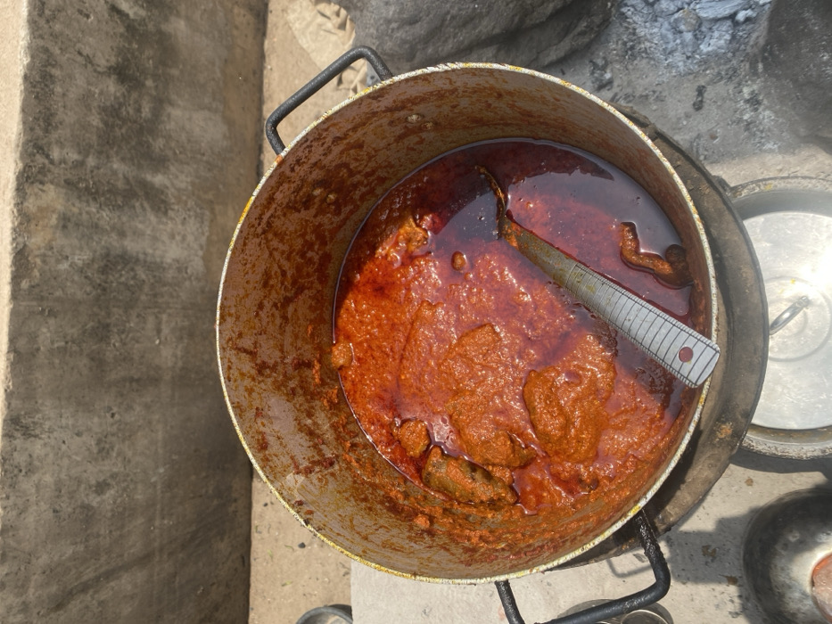 - "This image depicts a large aluminum cooking pot containing a bright orange-red stew, likely a local soup or sauce, in Moniya, Nigeria" by FM-BPBpZ2, licensed under CC BY 4.0