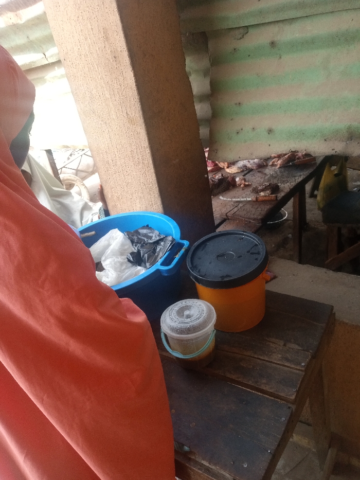 This image captures a close-up scene within an indoor or semi-covered outdoor commercial or domestic space, specifically in Unguwa Uku Kauyen Alu, Nigeria
