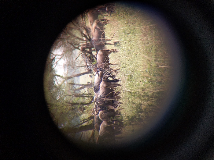 - "The image, framed by a circular vignette, displays a herd of approximately 15 to 20 wildebeest (Connochaetes taurinus) situated in a natural grassland environment with scattered trees" by FM-U5DpA2, licensed under CC BY 4.0