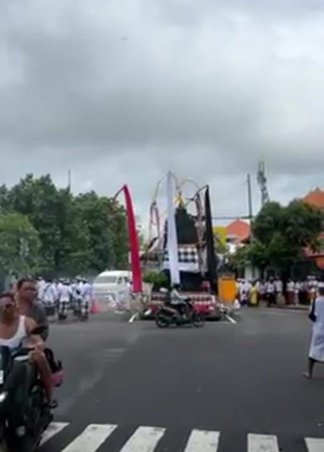 The video captures a Balinese religious procession