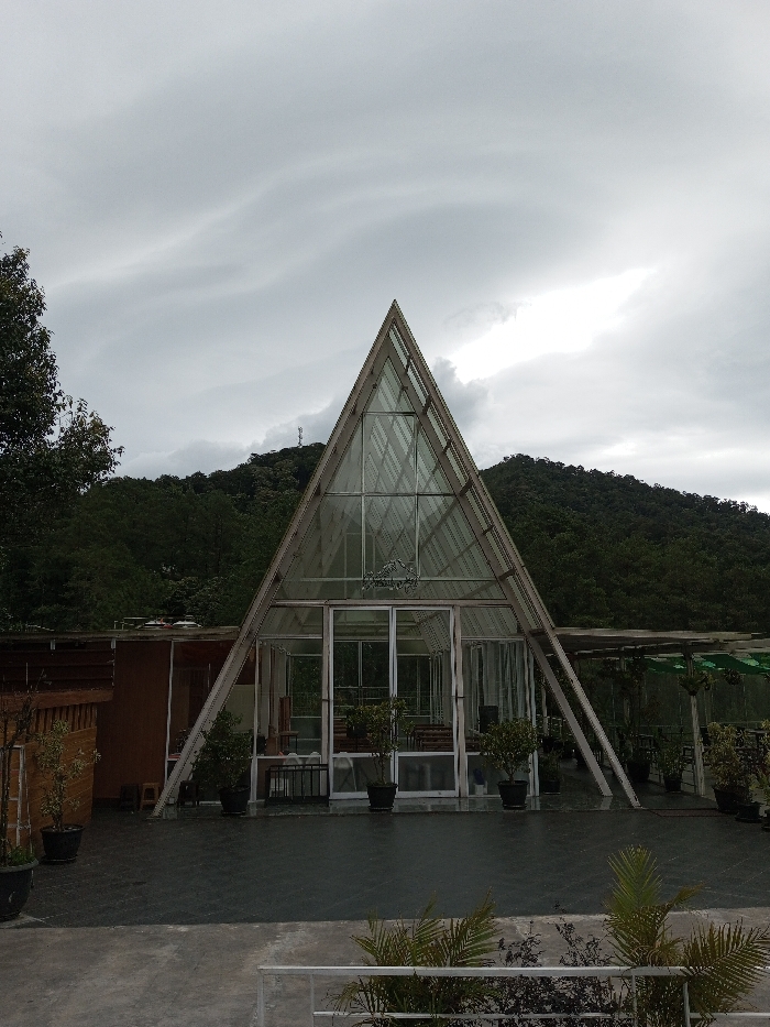 - "The image displays an A-frame glass building in Adhanur, India" by FM-YnnIF2, licensed under CC BY 4.0