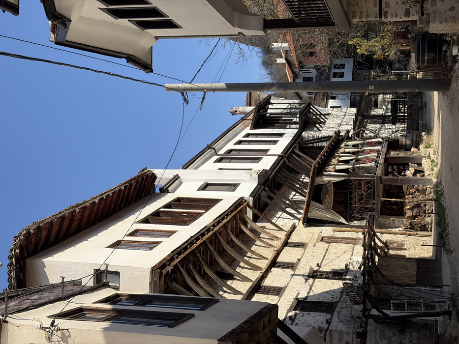 - "An unpaved, sunlit street in Melnik, Bulgaria, is depicted, flanked by multi-story traditional Bulgarian Revival-style buildings under a clear blue sky" by FM-2JU4N2, licensed under CC BY 4.0