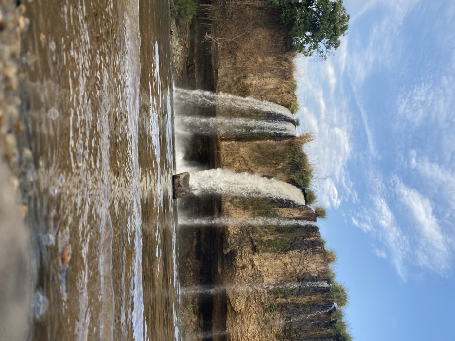 - "A multi-tiered waterfall cascades over tan, rocky cliffs, punctuated by patches of green vegetation" by FM-v68Gl1, licensed under CC BY 4.0