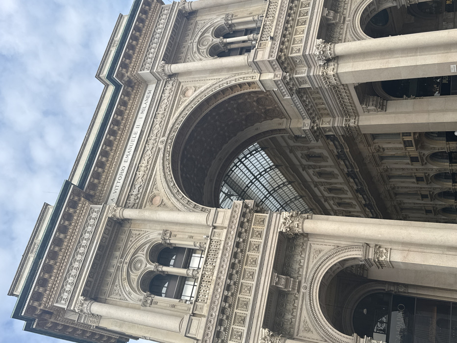- "The image displays an upward-angled view of the highly ornate Neo-Renaissance facade of the Galleria Vittorio Emanuele II, situated in Milan, Italy" by FM-yCiPo1, licensed under CC BY 4.0