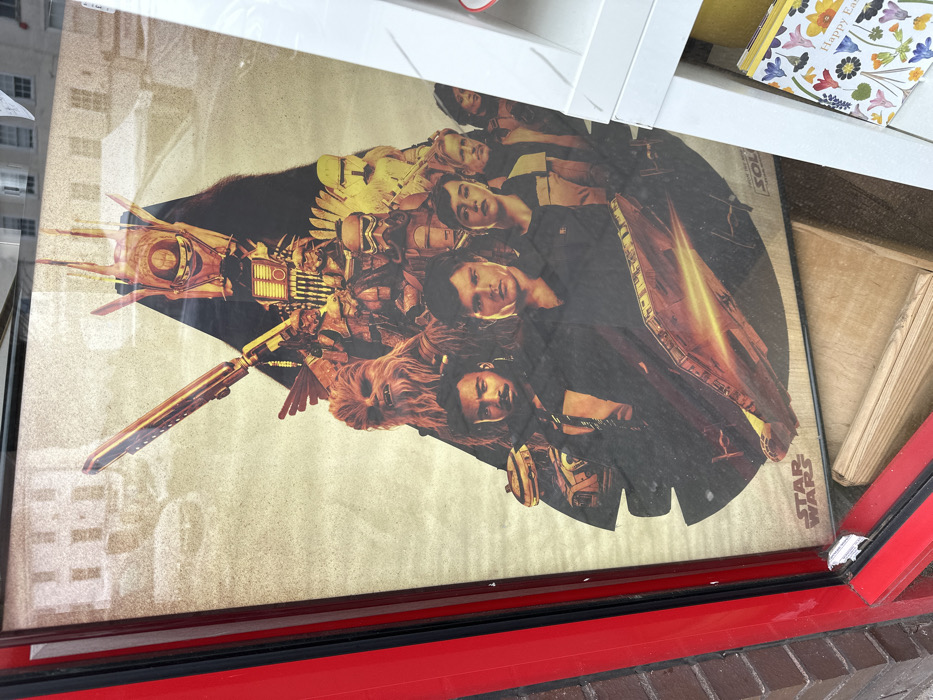 - "A large, framed "Solo: A Star Wars Story" movie poster is displayed vertically within a red-framed shop window in Epping Forest, United Kingdom" by FM-XMDnw2, licensed under CC BY 4.0