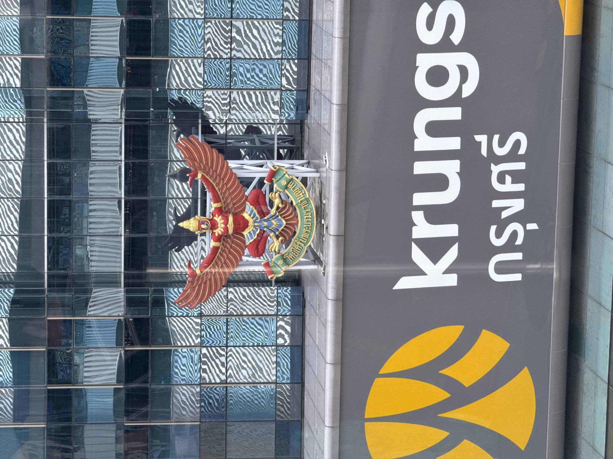 The image depicts a building in Bangkok, Thailand, featuring the Krungsri Bank logo