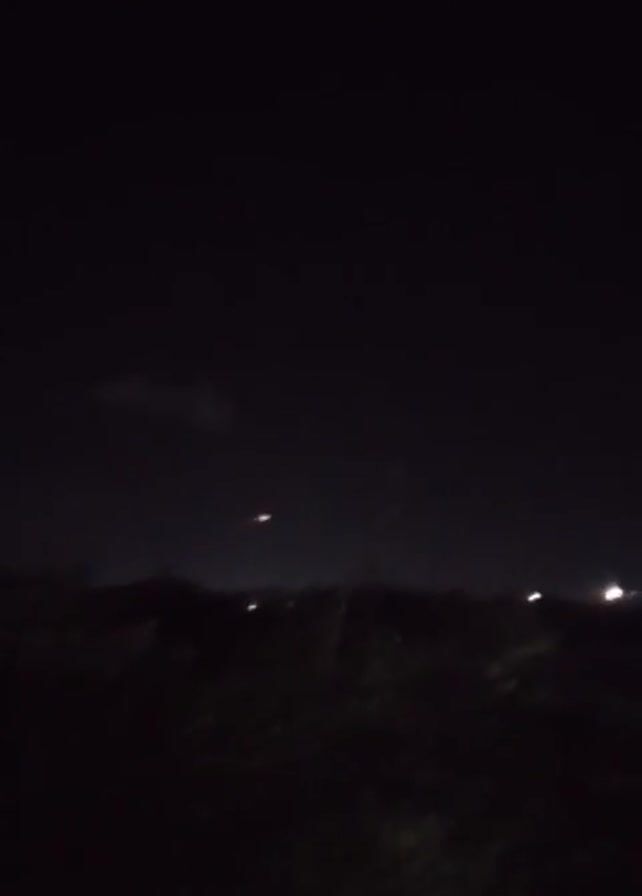 night scene. A crescent moon is visible in the dark sky, positioned over a dark horizon line that appears to be vegetation. Some blurred lights are present on the horizon, likely from a settlement or road. The footage is captured with an Infinix SMART 8 phone. The scene is otherwise dark.