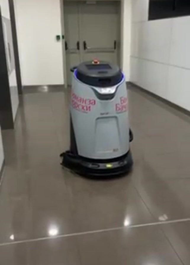 - "A gray and black robotic floor scrubber is seen in a brightly lit indoor space with gray tiled floors" by FM-KIPqC3, licensed under CC BY 4.0
