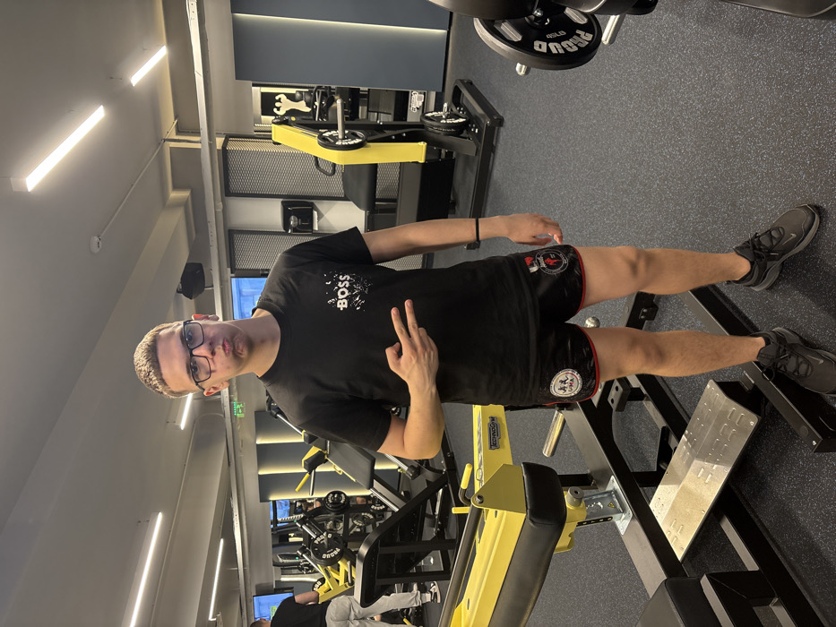 An image taken inside a modern gym in Varna, Bulgaria, depicts a young male standing centrally, facing the camera directly