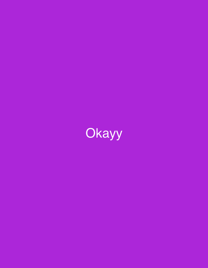 A solid purple background hosts the word "Okayy" in white, centered both horizontally and vertically
