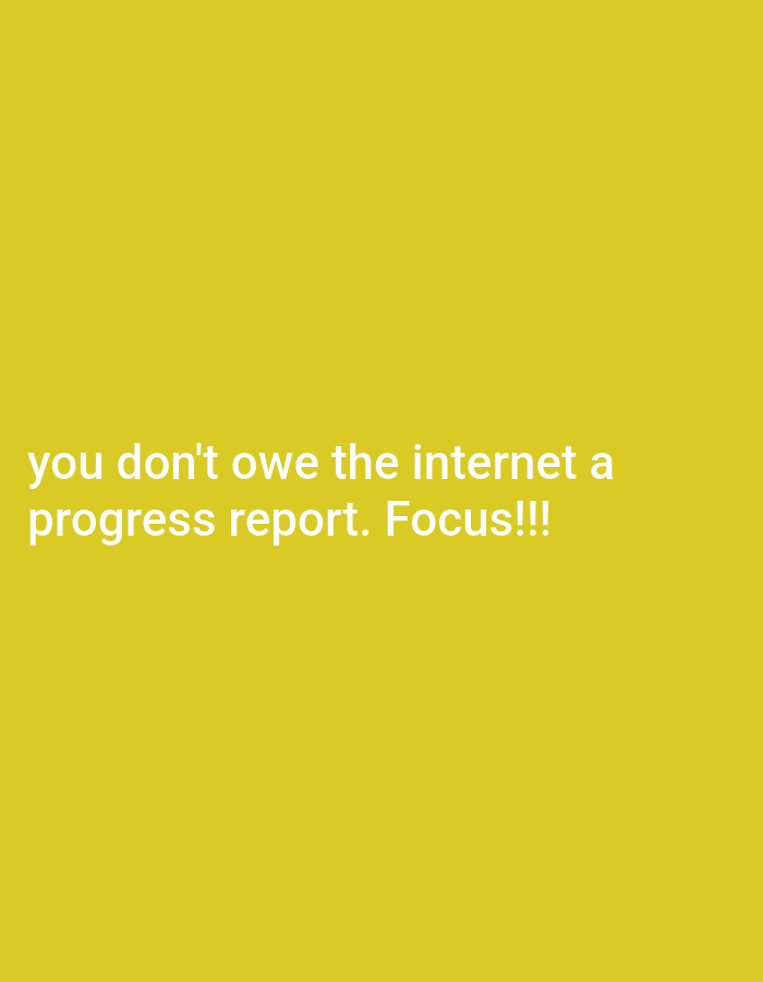 A yellow background displays the text: "you don't owe the internet a progress report