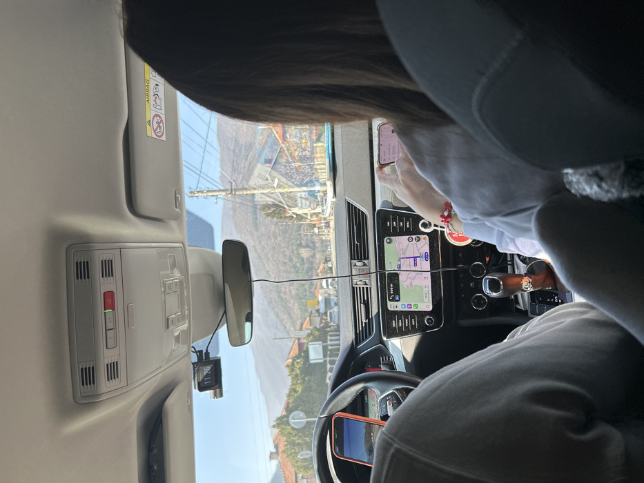- "The image depicts the interior of a vehicle from a rear passenger's vantage point, looking forward towards the dashboard and the road ahead in Vetren Dol, Bulgaria" by FM-lKpUb2, licensed under CC BY 4.0