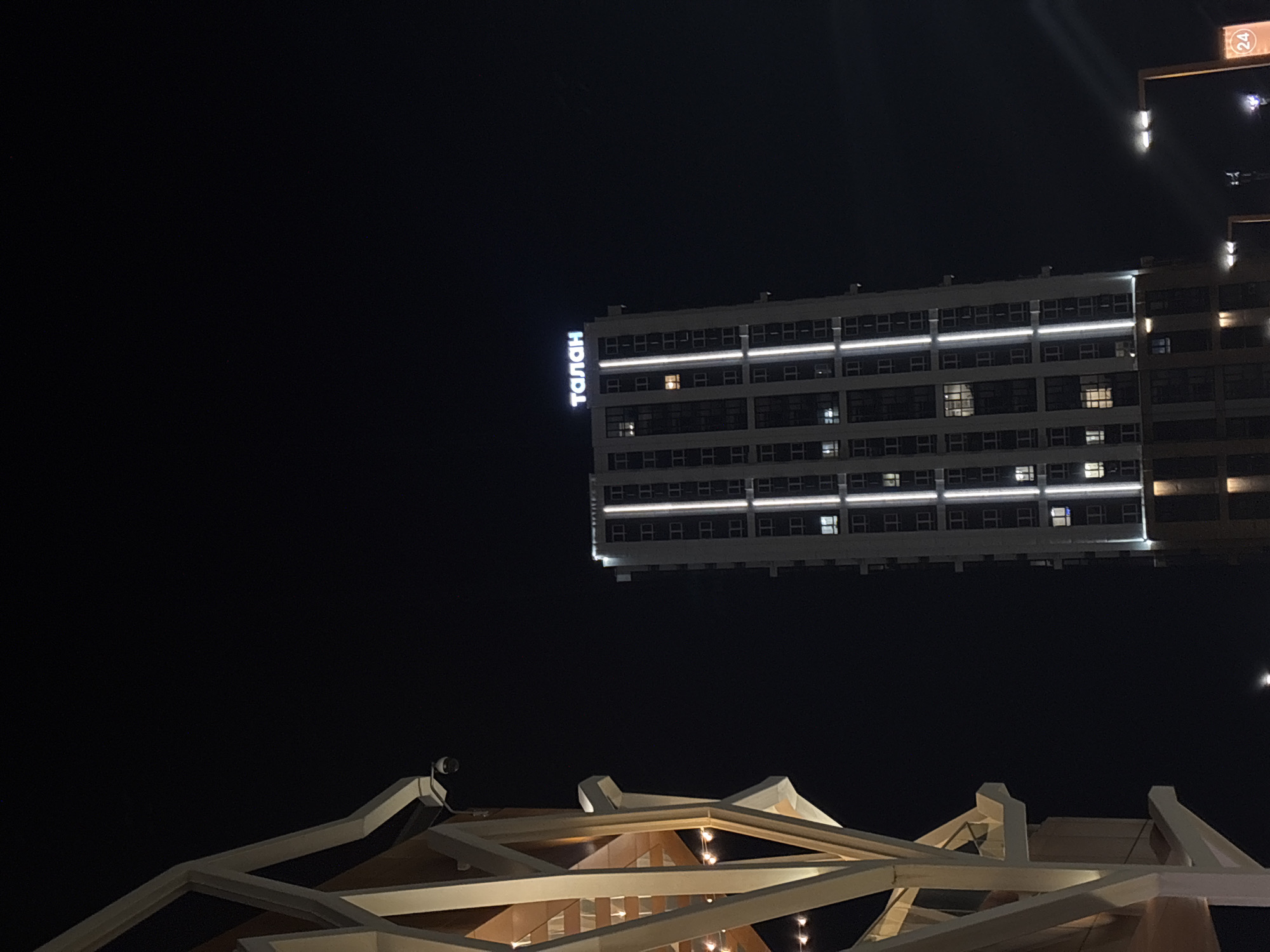 - "At night in Perm, Russia, a low-angle, horizontally-flipped shot reveals a multi-story building with the word "Талан" illuminated on its side" by FM-ziUfI2, licensed under CC BY 4.0