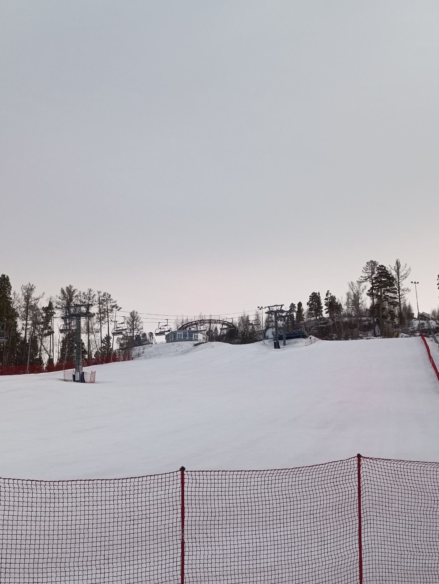 The image depicts a ski slope in Krasnoyarsk, Russia