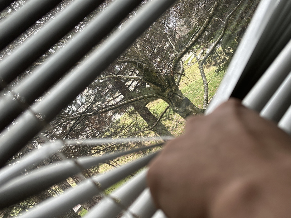 - "The scene depicts an interior view looking outwards through white, horizontal Venetian window blinds" by FM-M8nN12, licensed under CC BY 4.0
