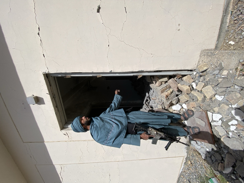 - "In Mandisar, Afghanistan, a male individual stands in a damaged doorway of a light-colored, cracked building under bright daylight" by FM-B5wmg2, licensed under CC BY 4.0
