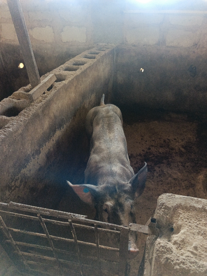 - "The image depicts a detailed overhead view inside a rudimentary animal enclosure, identified as a pigsty or pen, located within an unknown rural or agricultural setting" by FM-uR1S93, licensed under CC BY 4.0