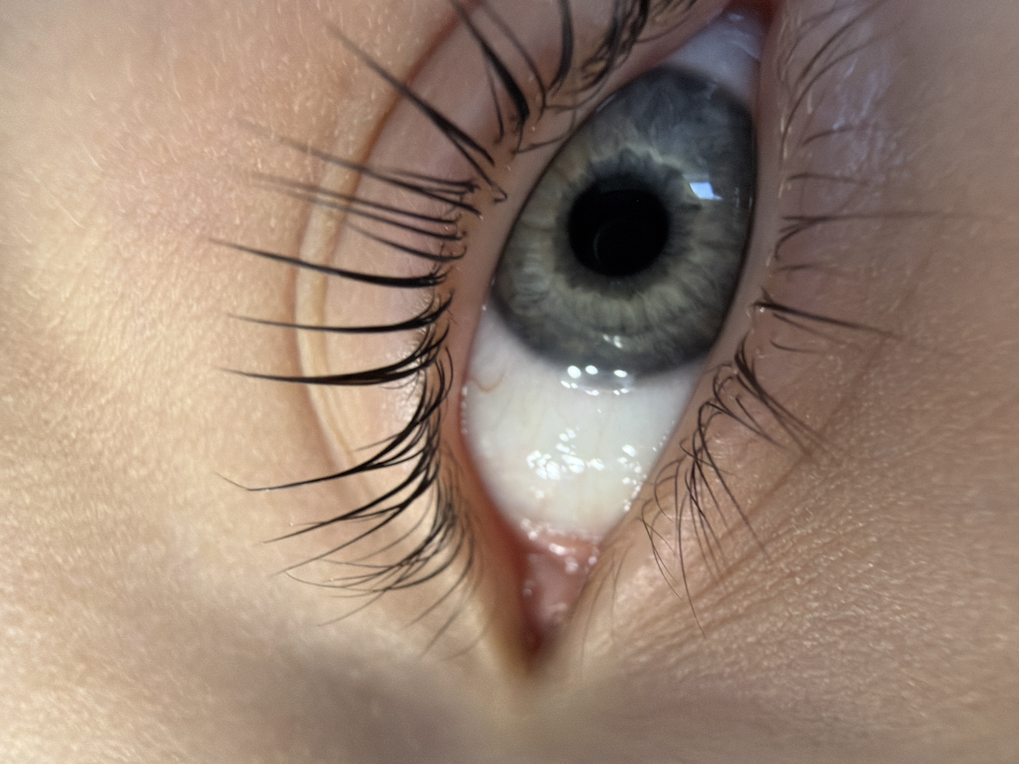 - "A close-up photograph depicts a human eye, showcasing a grayish-blue iris, a black pupil, and surrounding skin" by FM-aO1zD3, licensed under CC BY 4.0