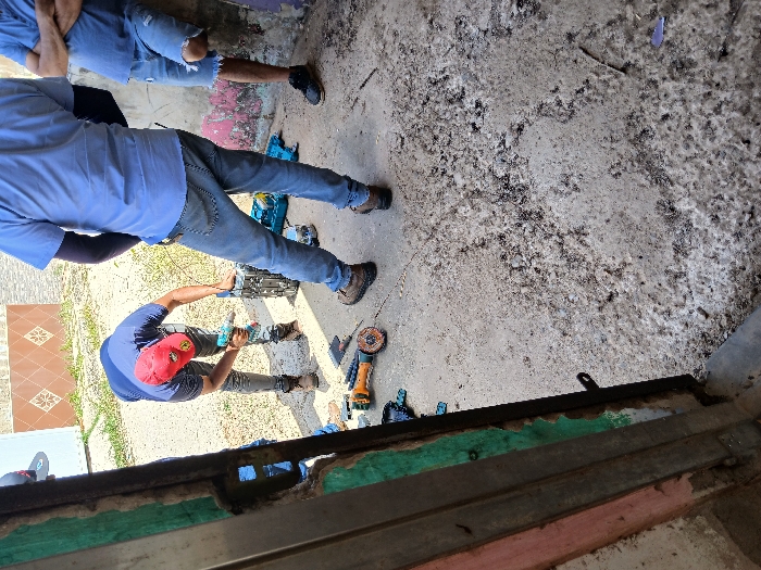 - "The scene depicts three adult males engaged in a mechanical or construction activity in an outdoor setting within Juan Griego, Venezuela" by FM-Orjiq1, licensed under CC BY 4.0