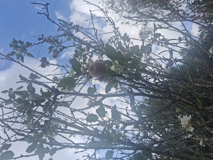 - "This upward-angled photograph depicts an apple tree located in Muthambi ward, Kenya, against a partially cloudy blue sky" by FM-UrRWw2, licensed under CC BY 4.0