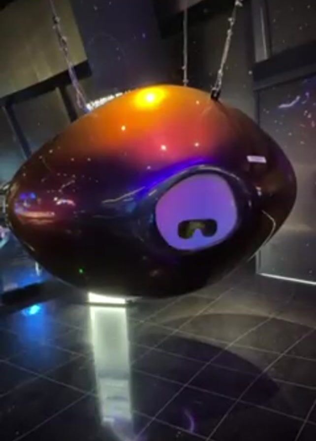 - "A still shot shows a large, eye-shaped structure suspended from the ceiling" by FM-Ribsj1, licensed under CC BY 4.0