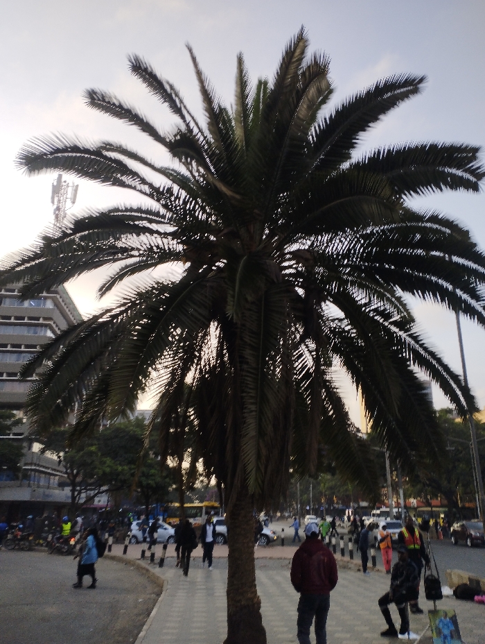 - "A tall palm tree dominates the foreground with a textured trunk and large, dark fronds" by FM-DV2JF3, licensed under CC BY 4.0