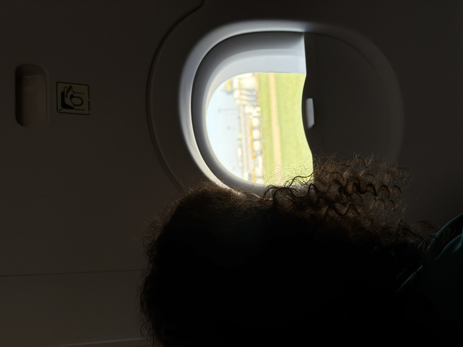 - "The image presents an interior perspective from an aircraft cabin, featuring a passenger observing the exterior through an oval window at Paris-Orly Airport in Paray-Vieille-Poste, France" by FM-FhFPn2, licensed under CC BY 4.0