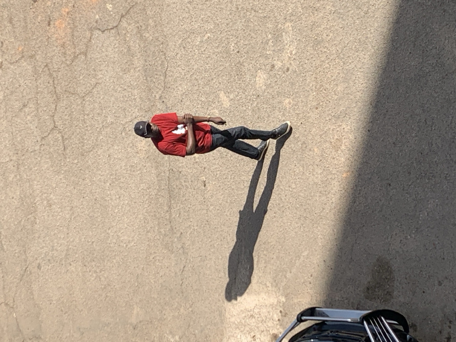- "The image captures an overhead view of a single individual walking on a light-brown, cracked paved surface in Jos, Nigeria" by FM-ngtiz2, licensed under CC BY 4.0