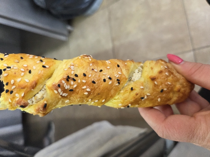 - "A close-up, eye-level shot depicts a person's hand holding a single, golden-brown, twisted pastry, situated indoors in the city of Gevgelija, North Macedonia" by FM-RWGJp2, licensed under CC BY 4.0