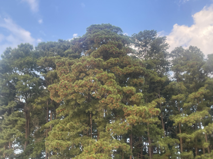 - "The image displays a dense canopy of conifer trees, consistent with pine species, under a partially cloudy blue sky, located in Jos, Nigeria" by FM-G052v2, licensed under CC BY 4.0
