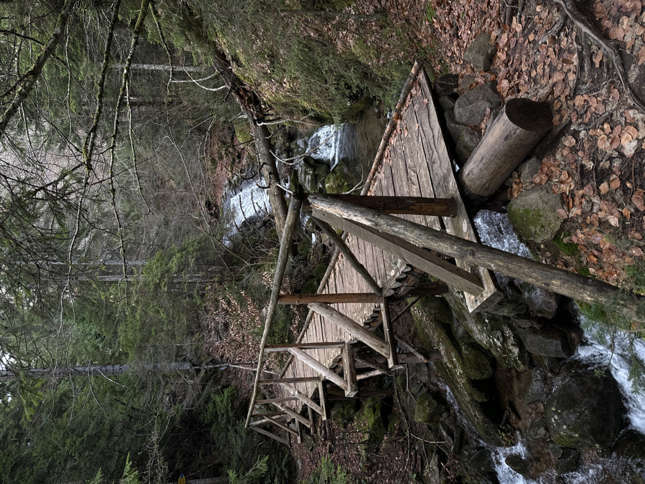 - "This image captures a multi-segmented rustic wooden bridge traversing a rocky stream within a dense coniferous and deciduous forest, located near Smolyan, Bulgaria, likely part of a natural eco-trail" by FM-o3SHn1, licensed under CC BY 4.0