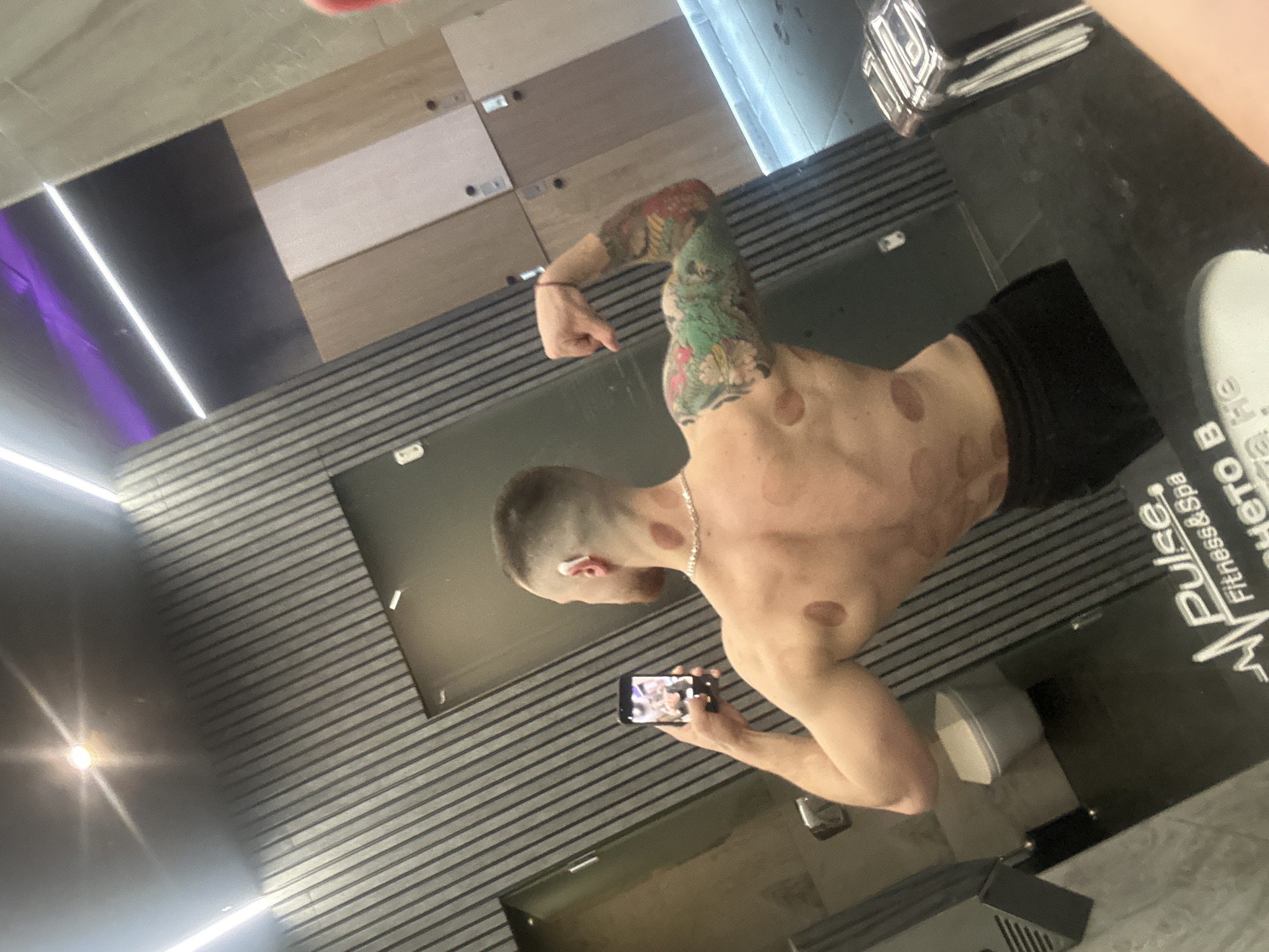 A male individual is depicted from a posterior-oblique angle in a mirror selfie taken within a Pulse Fitness&Spa facility in Sofia, Bulgaria