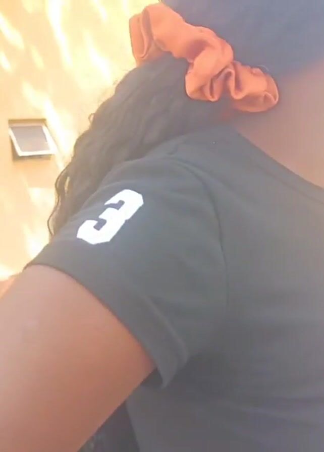 two women standing outside on a sunny day. The first woman is wearing a black shirt with a white letter on the sleeve. The second woman is wearing a striped shirt, carrying a pink purse, and walking next to a younger woman with an orange head covering. The women appear to be walking in front of a building on a grassy lawn. There is a yellow generator and a water tank in the background.