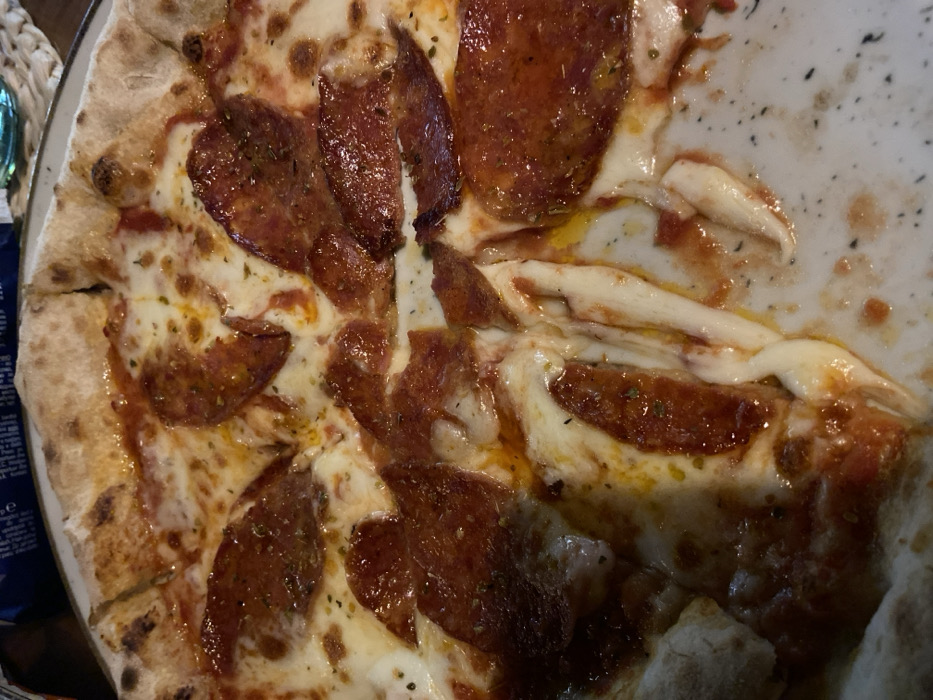- "A partly consumed pepperoni pizza dominates the frame" by FM-1ntxd2, licensed under CC BY 4.0