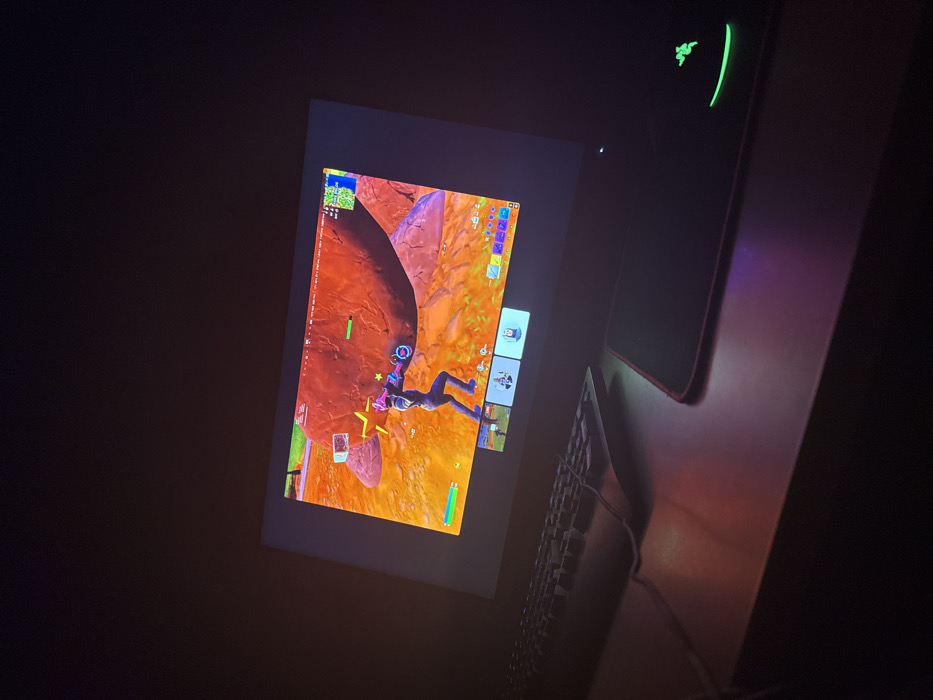 The image depicts a dimly lit indoor environment, specifically a personal computer setup located in Unknown, Unknown