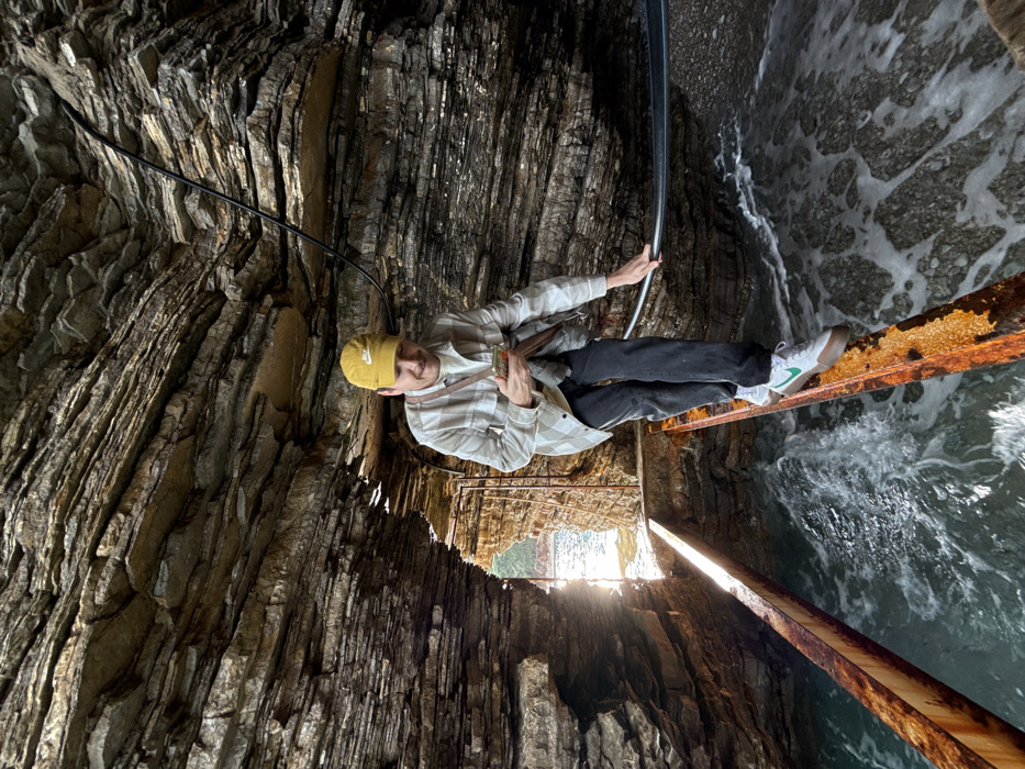- "The image depicts an adult male traversing a rusty metal beam walkway inside a coastal rock tunnel in Budva, Montenegro, specifically on the path to Mogren Beach" by FM-7mF7g2, licensed under CC BY 4.0