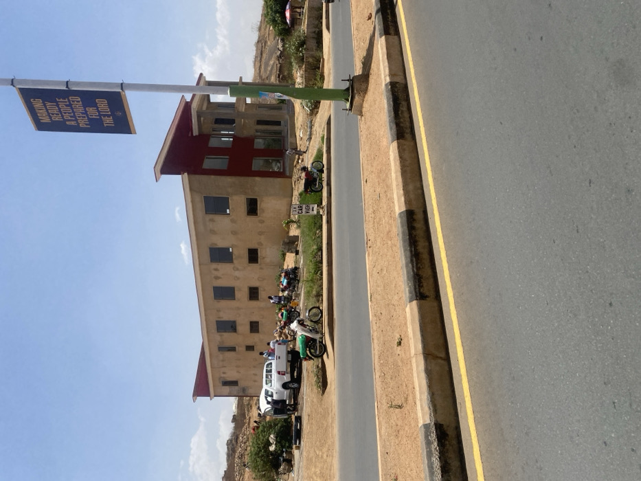 This image captures a roadside scene in Jos, Nigeria, under a clear blue sky