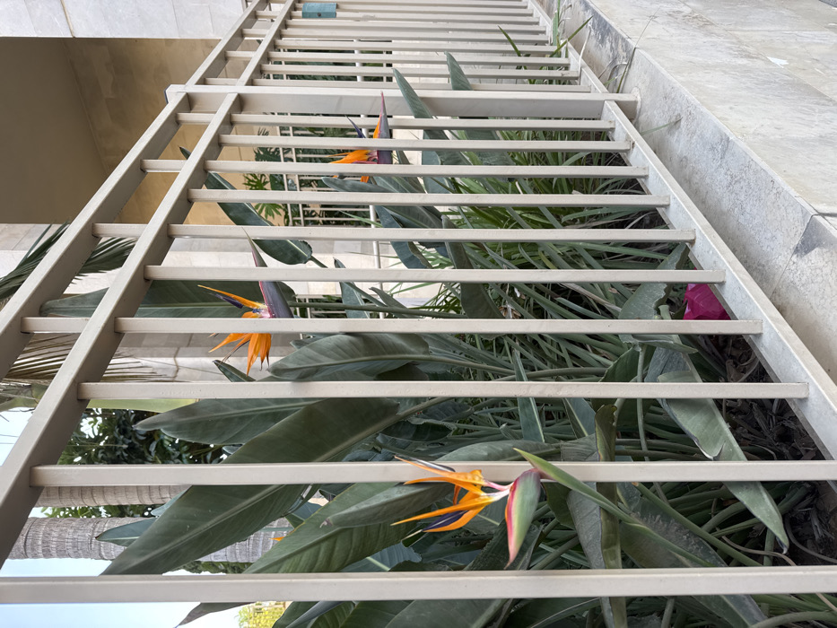 - "The image displays a close-up, slightly upward-angled view of a landscaped area in Herzliya, Israel, observed through a light-colored metal railing" by FM-XPWis2, licensed under CC BY 4.0