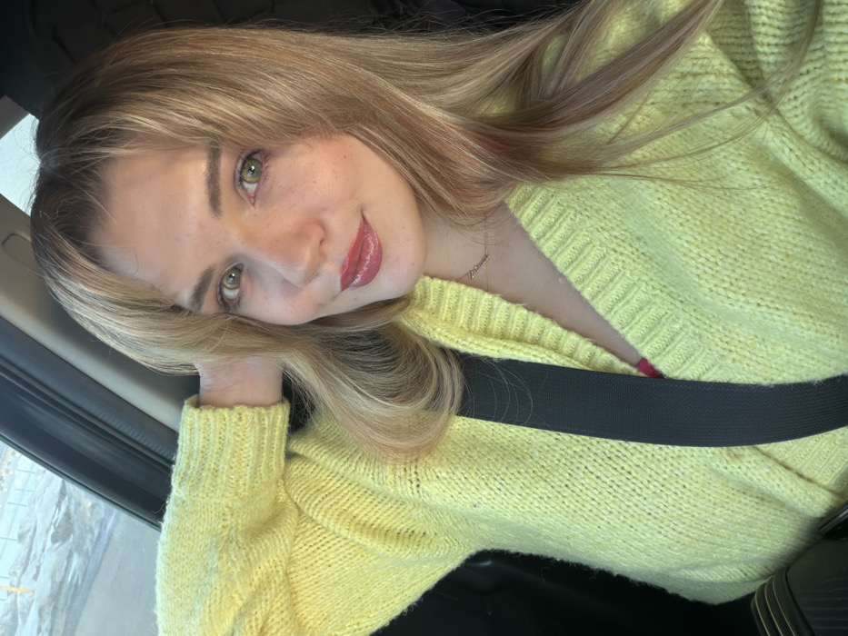 - "A young adult female, with long blonde hair and bangs, light skin, green eyes, and light makeup including reddish-pink lip gloss, is depicted from the chest up, positioned inside a vehicle, purportedly in the city of Азьмушкино, Russia" by FM-aKWvB3, licensed under CC BY 4.0
