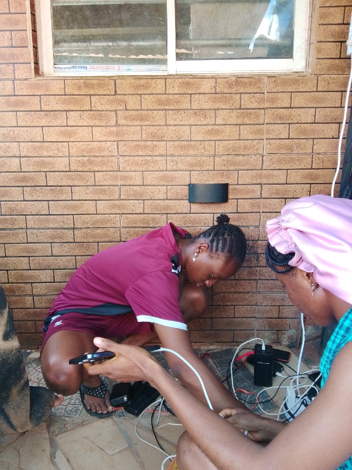 - "The scene, located in Agbor, Nigeria, depicts two individuals managing a charging station outdoors against a light brown brick wall" by FM-3cXCI3, licensed under CC BY 4.0